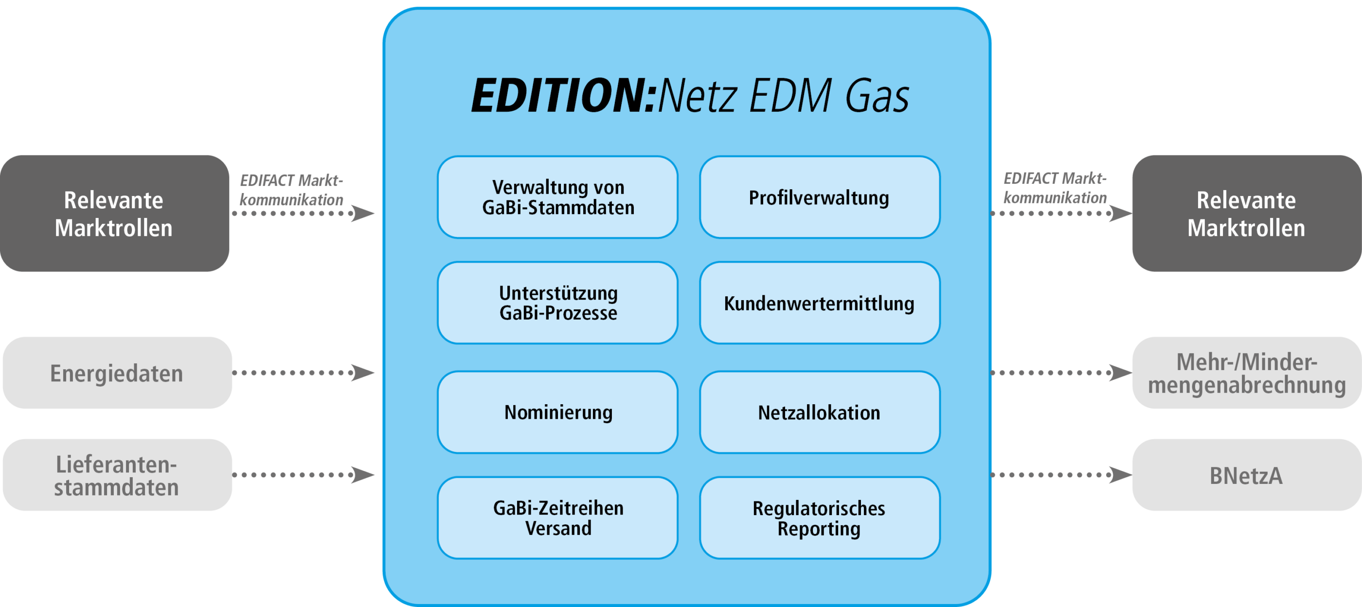 - Abbildung aller relevanten regulatorischen Prozesse der GaBi Gas inklusive EDIFACT-Kommunikation