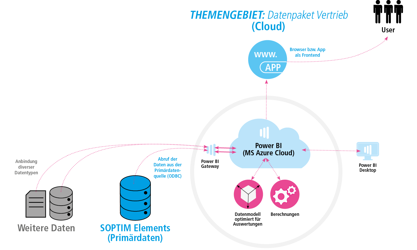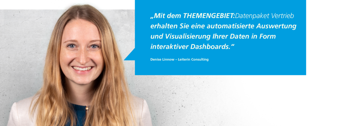 Daher bieten wir zusätzlich zu dem THEMENGEBIET:Datenpaket Vertrieb die Anbindung an die Business Intelligence Lösung von Microsoft Power BI sowie interaktive und intuitiv zu bedienende Berichte an. Somit sind Sie stets aktuell und bedarfsgerecht informiert – vom Vertriebsmitarbeiter im Außendienst bis zum Vorstand.